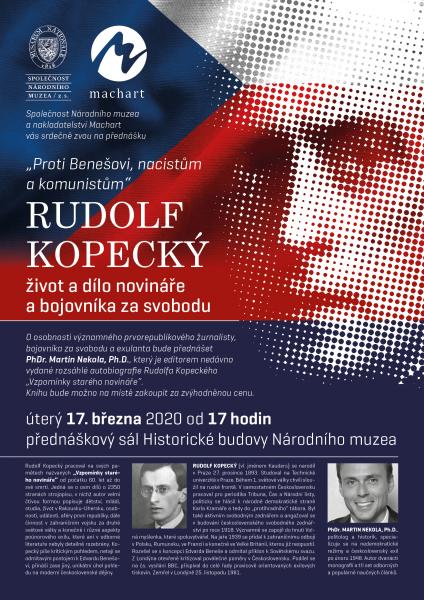 O osobnosti významného prvorepublikového žurnalisty, bojovníka za svobodu a exulanta bude přednášet PhDr. Martin Nekola, Ph.D., který je editorem nedávno vydané rozsáhlé autobiografie Rudolfa Kopeckého „Vzpomínky starého novináře“.