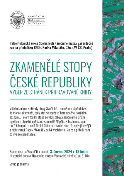 Všichni známe z přírody stopy živočichů a dokážeme si představit, že mohou zkamenět, tedy stát se součástí horninového (fosilního) záznamu. Pojem fosilní stopa se však zabývá nepoměrně širším spektrem objektů, než jsou zkamenělé šlépěje. K fosilním stopám patří i doupata a celá široká škála potravních stop. To nejzajímavější z nich shrnul Radek Mikuláš v právě vycházející knize a přiblíží nám to i ve své přednášce.