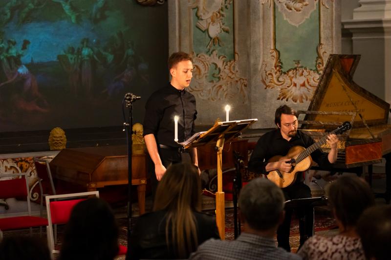František Max Kníže – významný obrozenecký skladatel předsmetanovské generace. Jeho dvousetčtyřicáté výročí narození oslavíme výborem z autorových balad a romancí pro zpěv s průvodem kytary. Zazní zhudebnění českých i německých textů autorových současníků Václava Hanky, Wilhelma Marsana a dalších. Kníže byl ve své době jeden z nejuznávanějších a nejoblíbenějších autorů nově vznikající formy české umělé písně. Několik jeho písní nakonec zlidovělo – byly opisovány a vydávány v písňových sbornících ještě dlouho po autorově smrti. K velkým ctitelům Knížetových písní patřil například i K. H. Mácha. Kníže, dlouholetý člen orchestru Stavovského divadla (hráč na violu a fagot), byl též vynikajícím kytaristou a autorem první školy pro kytaru vydané v Čechách. Později působil jako regenschori a psal též ceněnou hudbu duchovní.